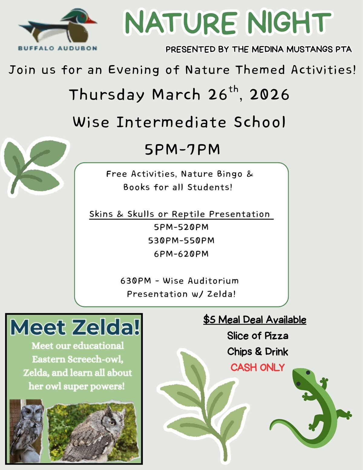 Wise Families,The PTA Nature Night is tonight at Clifford Wise. This is a free event, with food available for purchase, cash only. Doors open at 4:45PM. Please use the Main Entrance at Wise.Present...